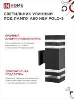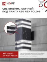 Характеристики Светильник уличный настенный двусторонний НБУ POLO-S-2хA60-BL-алюминиевый под лампу 2хA60 E27 черный IP54 IN HOME: