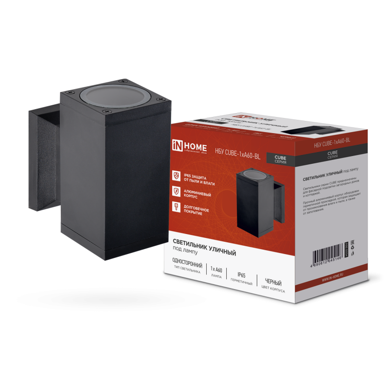 Назначение и применение Светильник уличный настенный односторонний НБУ CUBE-1хA60-BL алюминиевый под лампу 1хA60 E27 черный IP54 IN HOME