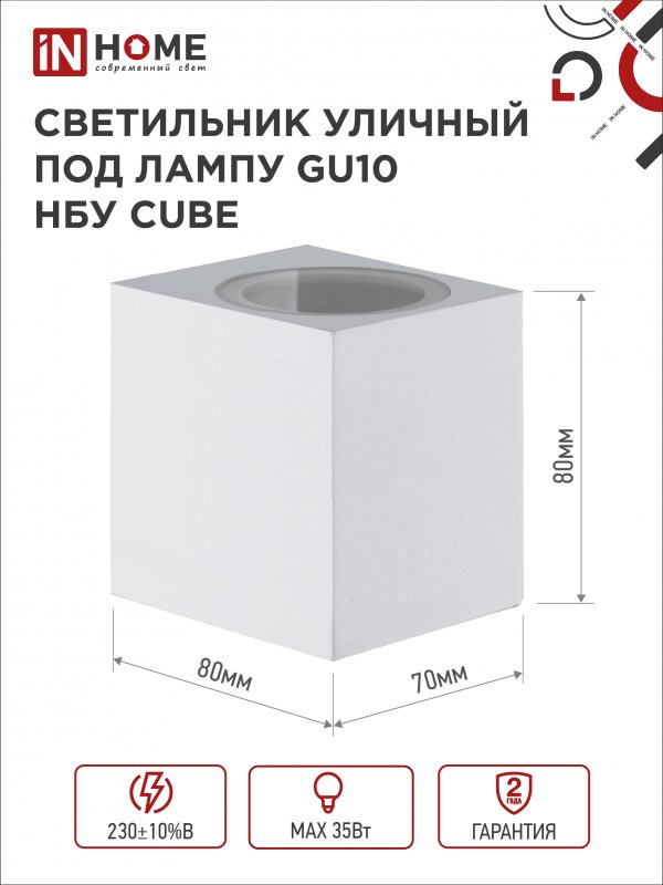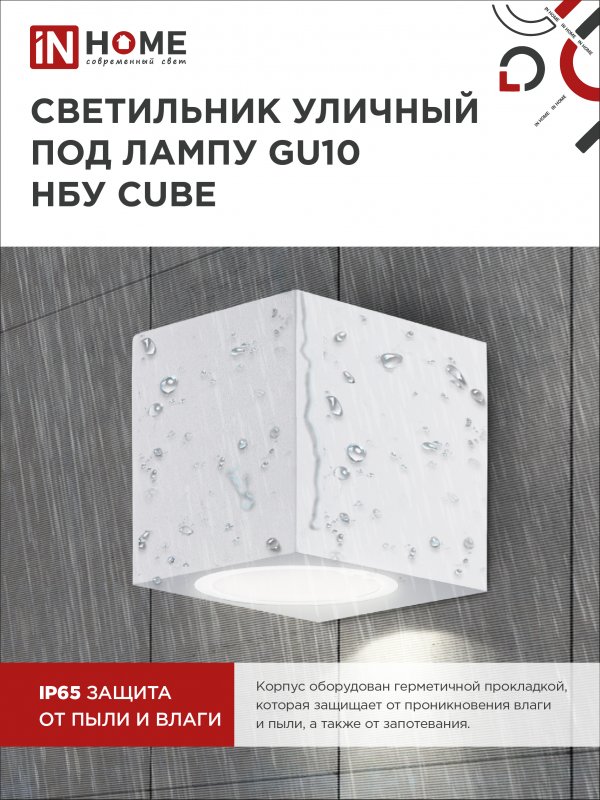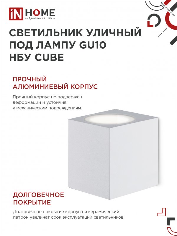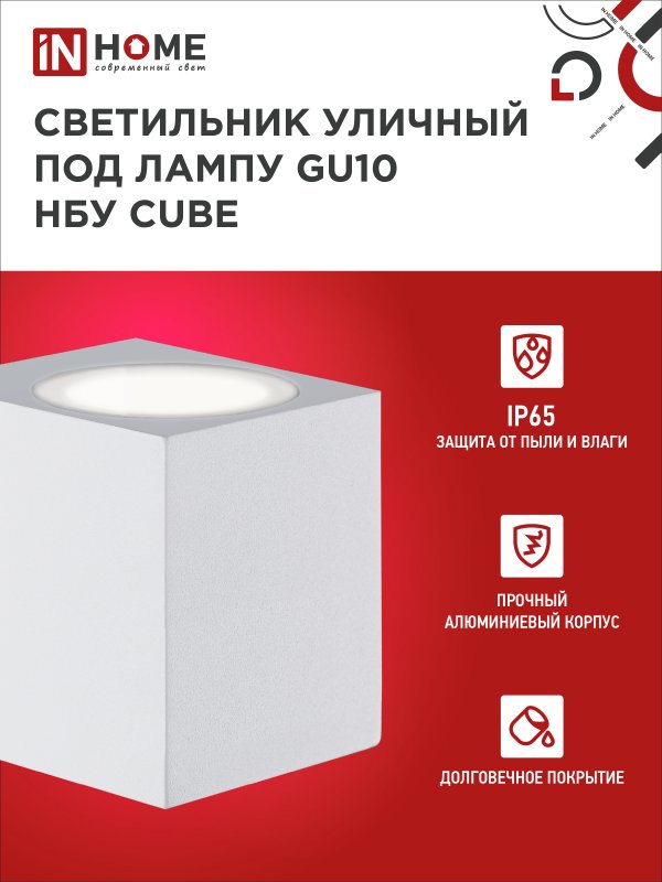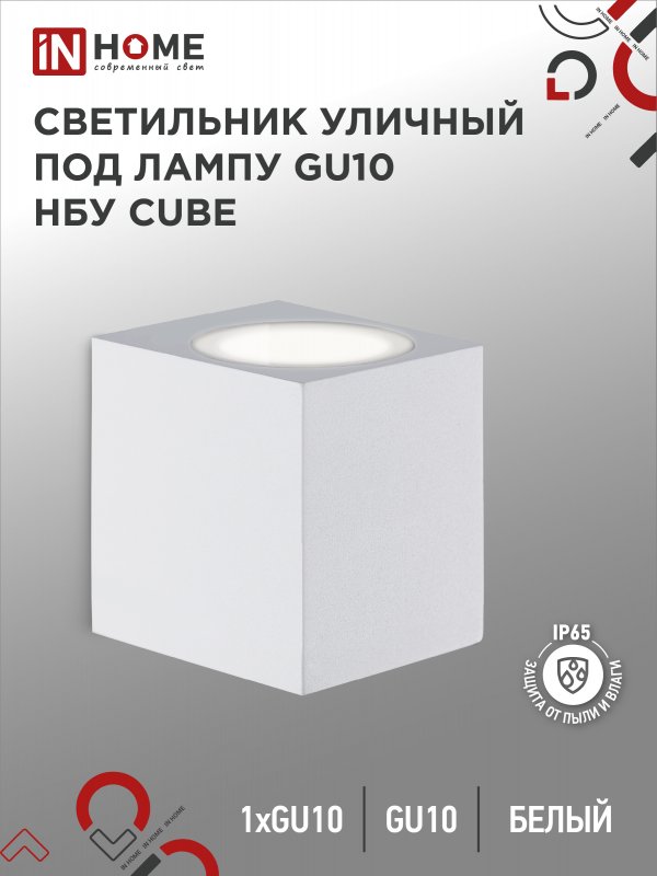 Назначение и применение Светильник уличный настенный односторонний НБУ CUBE-1хGU10-WH алюминиевый под лампу 1хGU10 белый IP54 IN HOME