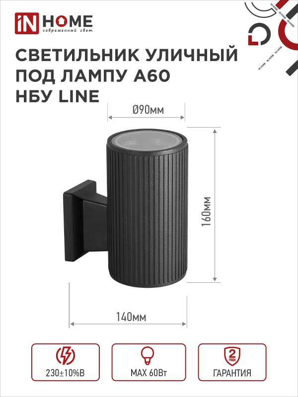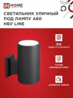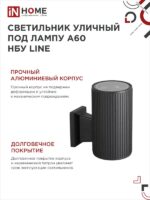 Характеристики Светильник уличный настенный односторонний НБУ LINE-1хA60-BL алюминиевый под лампу 1хA60 E27 черный IP54 IN HOME: