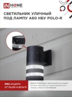 Характеристики Светильник уличный настенный односторонний НБУ POLO-R-1xA60-BL-алюминиевый под лампу 1xA60 E27 черный IP54 IN HOME: