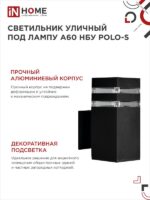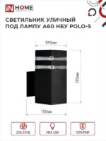 Характеристики Светильник уличный настенный односторонний НБУ POLO-S-1xA60-BL-алюминиевый под лампу 1xA60 E27 черный IP54 IN HOME: