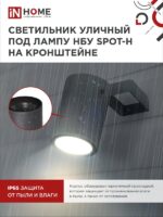 Характеристики Светильник уличный НБУ SPOT-HB алюминиевый под лампу GU10 230B на кронштейне черный IP54 IN HOME: