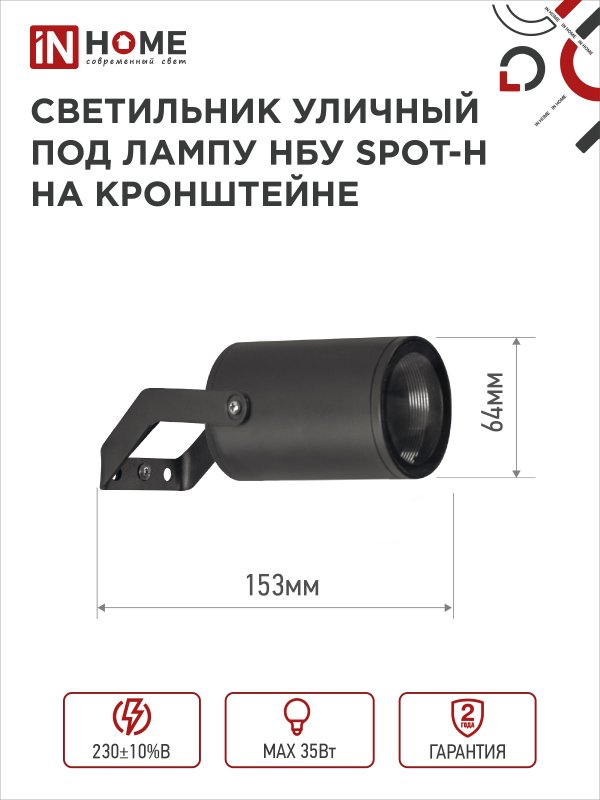 Характеристики Светильник уличный НБУ SPOT-HB алюминиевый под лампу GU10 230B на кронштейне черный IP54 IN HOME: