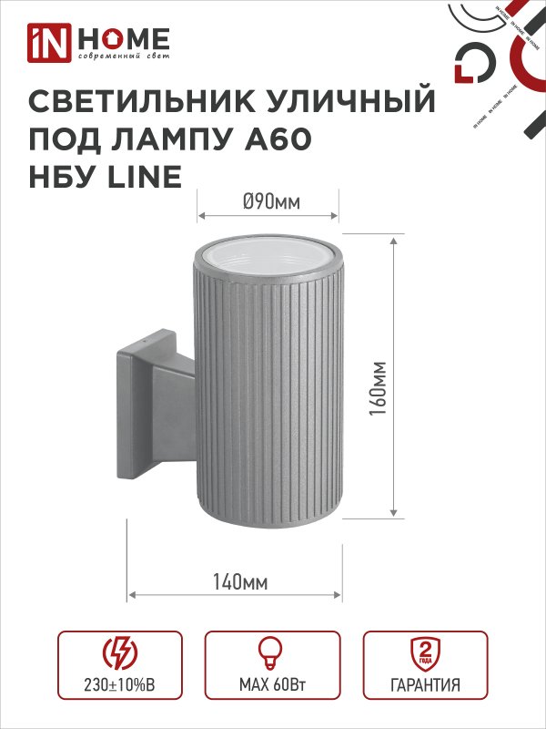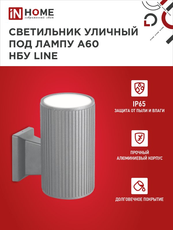 Назначение и применение Светильник уличный односторонний НБУ LINE-1хA60-GR алюминиевый под 1хA60 E27 серый IP65 IN HOME