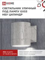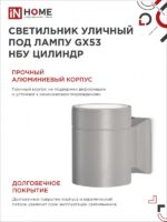 Характеристики Светильник уличный односторонний НБУ ЦИЛИНДР-1xGX53-GR алюминиевый под лампу 1хGX53 серый IP65 IN HOME:
