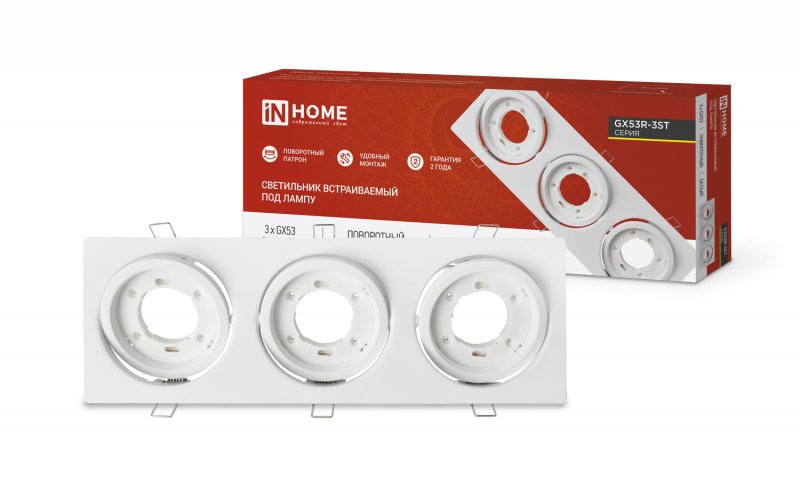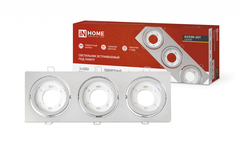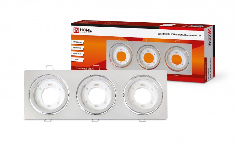 Характеристики Светильник встраиваемый GX53R-3ST 3RC металл под лампу GX53 230В поворотный тройной хром IN HOME: