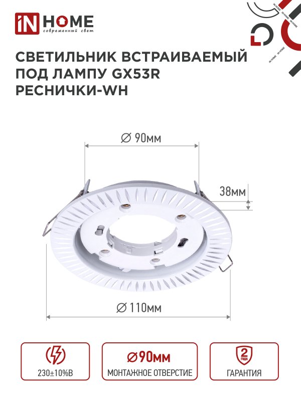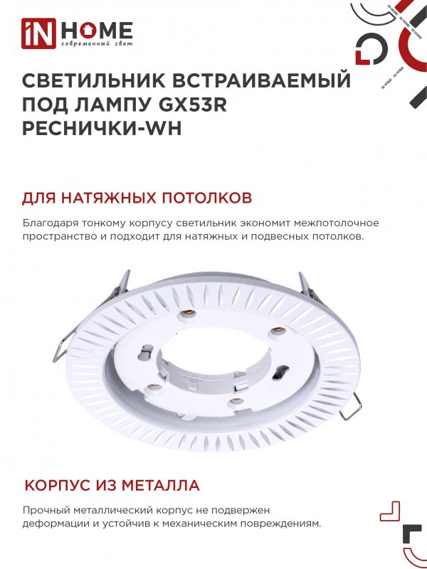 Характеристики Светильник встраиваемый GX53R-deco РЕСНИЧКИ-WH под лампу GX53 белый IN HOME: