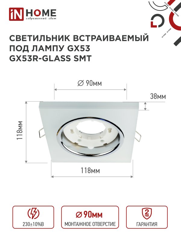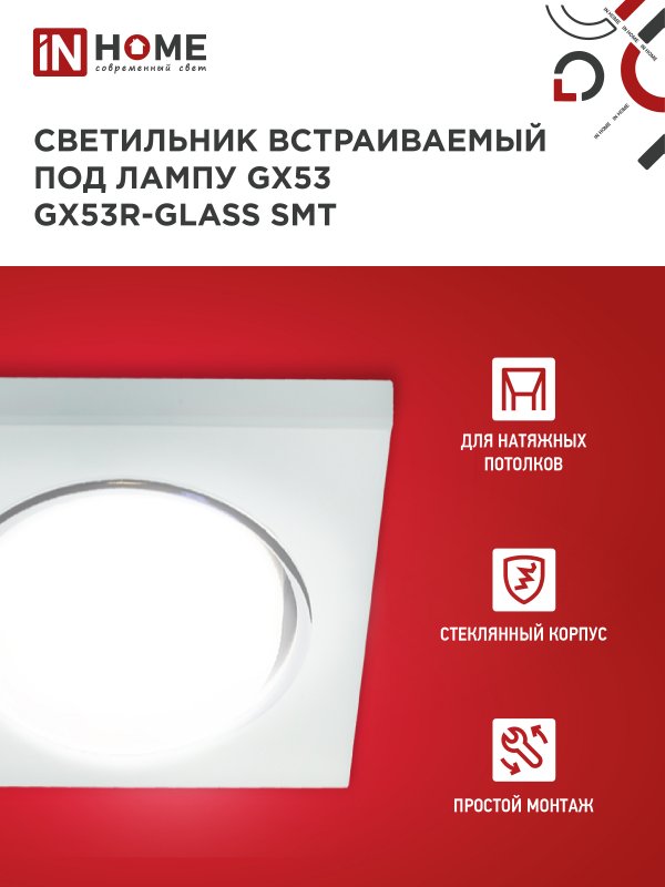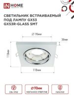 Характеристики Светильник встраиваемый GX53R-glass SMT под лампу GX53 КВАДРАТ матовый IN HOME: