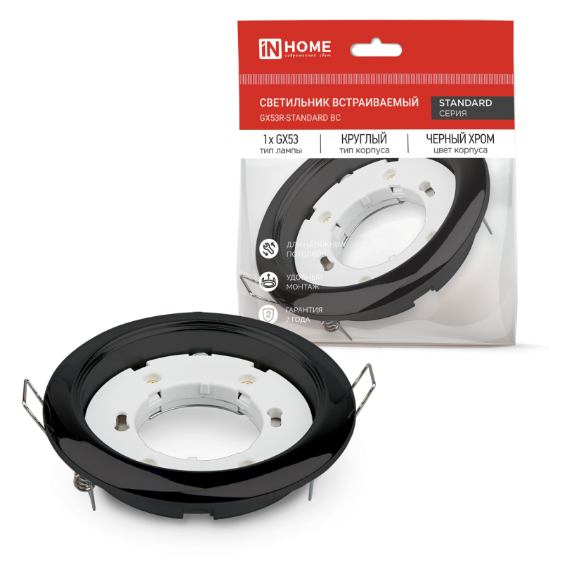 Характеристики Светильник встраиваемый GX53R-standard RBC металл под лампу GX53 230В черный хром IN HOME: