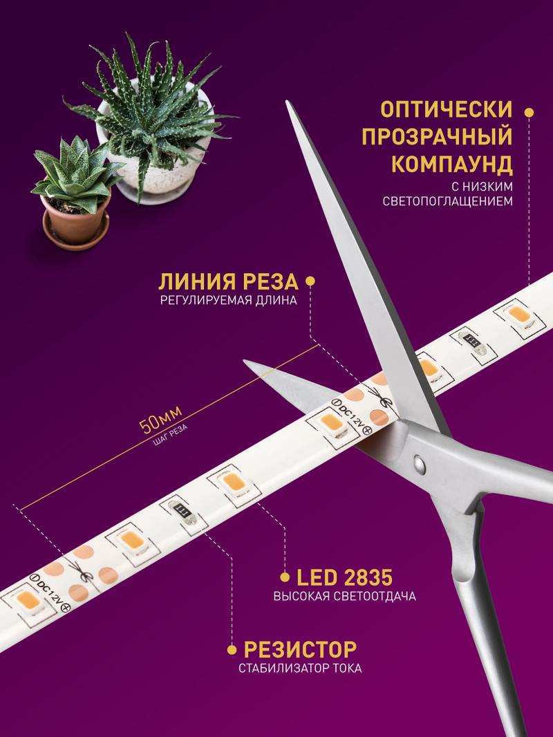 LED-лента для роста и развития растений с драйвером в комплекте. Наличие штекерного адаптера обеспечивает более высокий КПД по сравнению с лентами, оснащёнными USB-адаптерами. Высокая светоотдача — 60 светодиодов красно-синего спектра на 1 метр ленты. Быстро устанавливается на любые гладкие поверхности и может переклеиваться несколько раз. Фитолента ЭРА с силиконовым покрытием имеет повышенную прочность. Длина шнура адаптера — 1 метр. Длина самой ленты — 2 метра. Силиконовое покрытие работает как рассеивающая линза, уменьшая осевую силы света и создавая более мягкое для глаз свечение. Фотонный поток с 1 метра ленты — 11 мкм/с. Мощность фитоленты ЭРА — 18 Вт. Напряжение на выходе адаптера — 12 вольт.