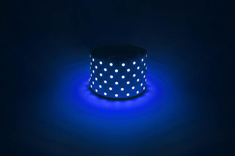 Светодиодная лента LS5050-14,4-60-12-B-IP20-1 year-5m со степенью защиты от пыли и влаги IP20 — современный способ создания внутреннего освещения, подсветки ниш, лестничного пространства, систем хранения, а также декоративного и художественного оформления любых объектов и форм. Легко и быстро устанавливается на любой гладкой поверхности с помощью скотча, расположенного на оборотной стороне ленты. Используя алюминиевый профиль, можно создавать необычные и функциональные решения освещения в Вашем интерьере. Рабочее напряжение ленты составляет 12 В, а мощность равна 14,4 Вт/м. Светодиодная лента обладает — синим цветом свечения (465нМ).