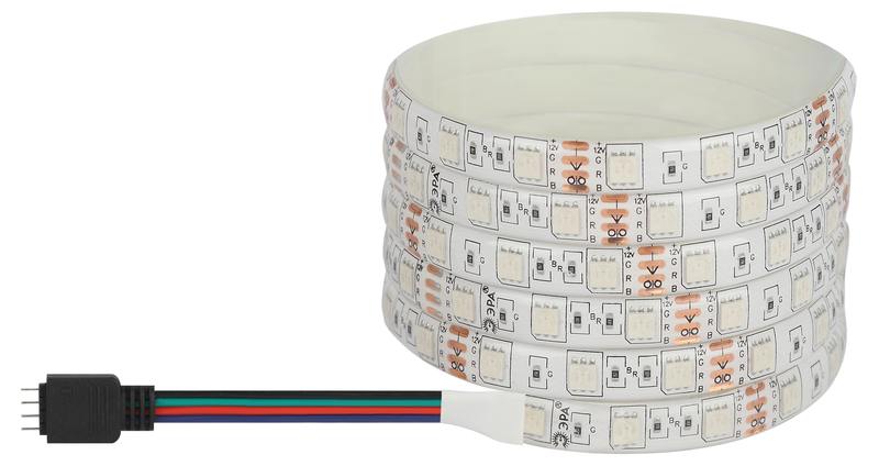 Светодиодная лента LS5050-14,4-60-12-RGB-IP65-1 year-5m со степенью защиты от пыли и влаги IP65 — современный способ создания внутреннего освещения, подсветки ниш, лестничного пространства, систем хранения, а также декоративного и художественного оформления любых объектов и форм в помещениях с повышенным уровнем влажности и уличного освещения. Легко и быстро устанавливается на любой гладкой поверхности с помощью скотча, расположенного на оборотной стороне ленты. Используя алюминиевый профиль, можно создавать необычные и функциональные решения освещения в Вашем интерьере. Рабочее напряжение ленты составляет 12 В, а мощность равна 14,4 Вт/м. Светодиодная лента обладает — цветом свечения RGB(625/520/465нМ).