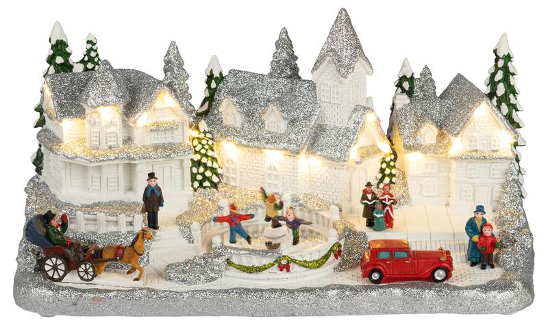 Характеристики Светодиодная новогодняя фигура ЭРА EFIS-S08 композиция Снежная деревня теплый белый свет 3АА 31*16*16 см: