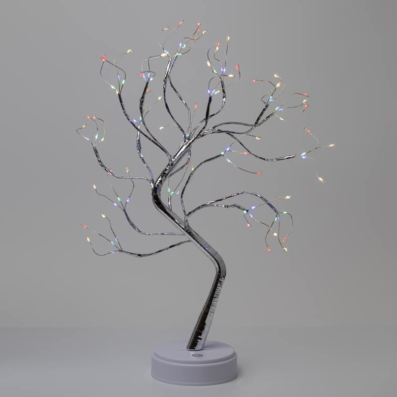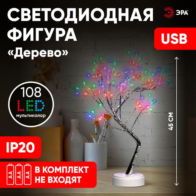 Светодиодный декоративный светильник ЭРА ЕGNID — 36MC "Дерево с самоцветами" с 36 миниатюрными светодиодами microLED. Прекрасное решение купить такой LED-светильник как новогодний светильник, новогодний ночник, новогодний подарок, праздничный декор на стол, новогодний декор на полку, новогодний декор в офис. Микросветодиоды — настоящий тренд в области декоративного освещения. Настольное светящееся дерево ЭРА высотой 45 см красиво светится разными цветами, microLED-лампочки украшают элегантные тонкие ветви с серебристым покрытием. Современный декоративный светильник ЭРА "Дерево с самоцветами" на сенсорном управлении — удобная кнопка включения располагается на лаконичной подставке. Два типа питания: 3 батарейки АА или подзарядка от USB-кабеля. Светящееся LED-дерево — прекрасный подарок к любому празднику. Это уникальная новинка на российском рынке!