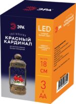 Новогодний светодиодный светильник ЭРА ENGDS-12 "Красный кардинал" высотой 18 см (арт. Б0051944) создаст у Вас дома праздничную атмосферу! Светильник-фонарик выполнен из ПВХ и окрашен под медь, внутри стекла расположены блестки, создающие эффект падающего снега. Внутри фонаря находятся фигурки двух красных кардиналов, они подсвечиваются 1 светодиодной лампочкой сверху. Декоративный светильник работает от 3 батареек АА, степень защиты IP20 (рекомендуется использовать в помещениях), автоматическое отключение через 6 часов. Он станет прекрасным украшением кухни, гостиной, а еще его можно использовать в спальне как ночник. Настольный винтажный фонарь — это необычный подарок на Новый год или Рождество, который понравится взрослым и детям. Новогодний декор для дома всегда поднимает настроение!