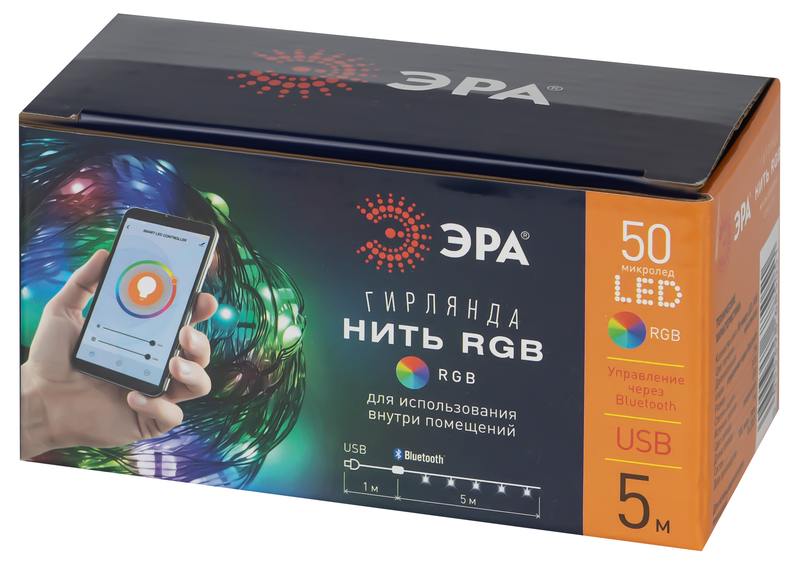 Характеристики Светодиодная новогодняя гирлянда ЭРА ЕGNIG — PU нить с управлением через мобильное приложение 5м RGB 50LED: