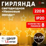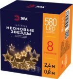Характеристики Светодиодная новогодняя гирлянда ЭРА ЕGNIG — ST занавес Неоновые звезды 8 режимов 2,4*0,8 м теплый свет IP20: