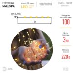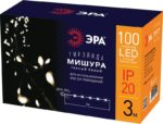 Характеристики Светодиодная новогодняя гирлянда ЭРА ЕNIG — 100M нить Мишура 3 м теплый белый 150 microLED 220 V: