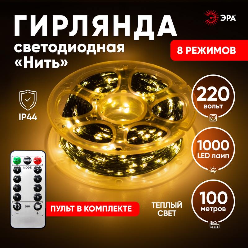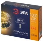 Характеристики Светодиодная новогодняя гирлянда ЭРА ENIN-1000G нить теплый свет 100 м 1000 microLED IP44 220В: