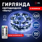 Характеристики Светодиодная новогодняя гирлянда ЭРА ENIN-1000W нить холодный свет 100 м 1000 microLED IP44 220В: