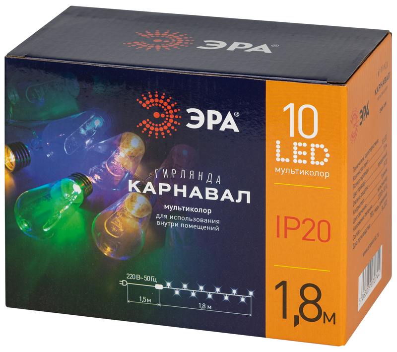 Характеристики Светодиодная новогодняя гирлянда ЭРА ENIN-16M нить С Новым Годом мультиколор 3 м 10 led IP20: