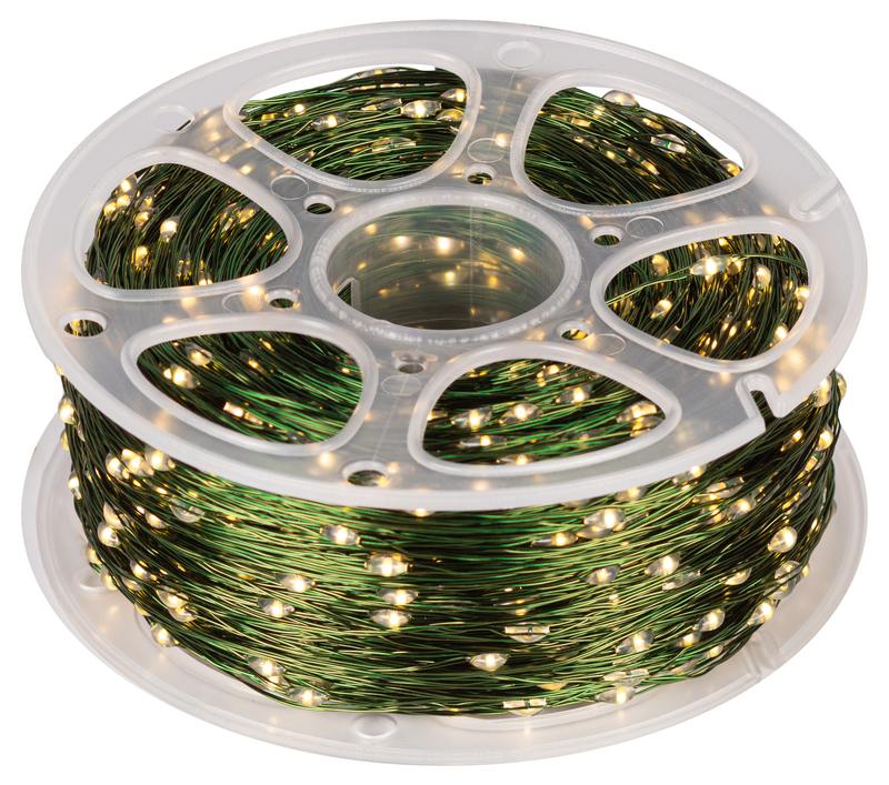 Характеристики Светодиодная новогодняя гирлянда ЭРА ENIN-2000G Нить теплый свет 200 м 2000 microled IP44 220В: