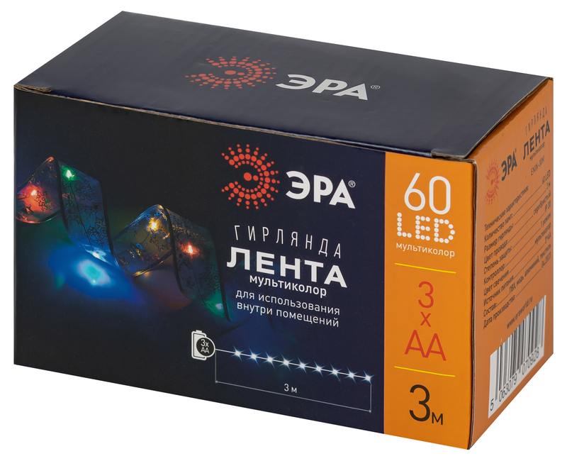 Характеристики Светодиодная новогодняя гирлянда ЭРА ENIN-30M нить Лента декоративная мультиколор 3 м 60 microled IP20: