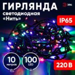 Светодиодная новогодняя гирлянда нить уличная 10 м мультиколор 100 LED ЭРА ERAPS-PM10