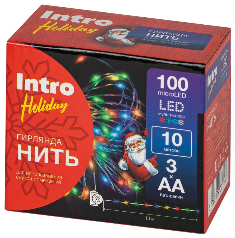 Характеристики Светодиодная новогодняя гирлянда Intro Holiday INNR-02M нить мультиколор 10 м 100 microled IP20 3AA: