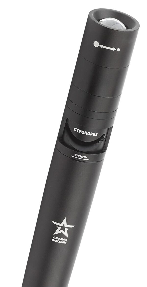ЭРА Армия России Аргумент — мощный фонарь-автоспасатель со стропорезом и молотком для стекла. Один из самых необычных фонарей на современном рынке. Представитель уникальной совместной серии бренда ЭРА и АО "Военторг" (действующего на основе лицензии Министерства обороны РФ), этот яркий качественный фонарь снабжён стропорезом и молотком для стекла. Такой функционал позволяет использовать его как автоспасатель. Актуальный практичный гаджет, который должен быть в автомобиле каждого мужчины. Особая конструкция и прочность корпуса позволяют применять ЭРА Армия России Аргумент для самозащиты. Фонарь упакован в картонную подарочную коробку в узнаваемой стилистике бренда "Армия России". Фирменная звезда "Армия России" — и на корпусе самого фонаря. Высокое качество освещения: сверхдальность (134 метра), оптимальный световой поток (200 лм), регулируемый фокус (дальний направленный, средний и ближний заливающий свет). Фонарь ЭРА Армия России Аргумент работает от 4 пальчиковых батареек — это 15 часов качественного света. Благодаря эргономичной конструкции, его удобно и приятно держать в руках.