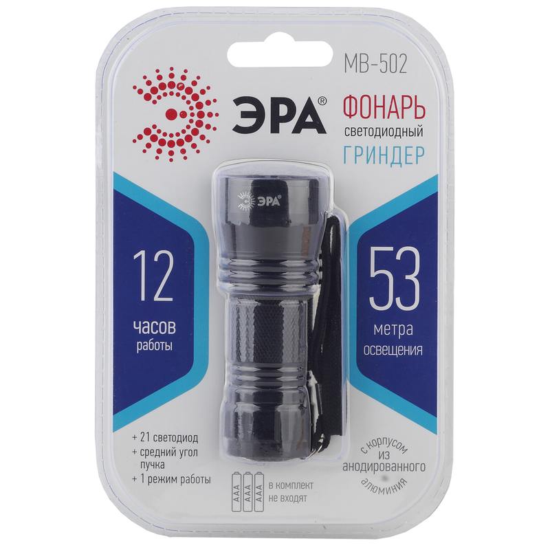 Характеристики Светодиодный фонарь ЭРА MB-502 ручной на батарейках алюминиевый: