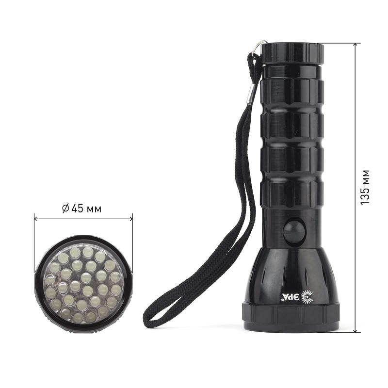 Прочный, мощный и надёжный фонарь MB-503 с широким углом освещения. Если необходим качественный источник света на небольшие расстояния. Дальность луча составляет 60 метров. Широкий угол очень удобен именно в бытовых ситуациях. Например, когда нужно осветить подвал или полку на чердаке и увидеть все необходимые предметы, а не крутить узким лучом по всему помещению. Фонарь с широким углом сразу осветит большую площадь вокруг и такое освещение предпочтительнее в повседневном использовании.Вы можете положить компактный фонарь в рюкзак, сумку, карман или бардачок. Он не занимает много места и не утяжеляет багаж. Фонарь работает от трех батарее ААА и способен работать 12 часов без перерывов и подзарядки. Фонарь комплектуется ремешком на запястье. Корпус выполнен из анодированного алюминия, ударопрочный и с насечками на ручке для более удобного захвата. Такой корпус более износостойкий и позволяет использовать фонарь в различных условиях. В фонаре источниками света являются 26 светодиодов, которые светят ровным белым и очень ярким светом.