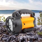 Светодиодный аккумуляторный прожектор с сигнальной лампой. Это очень мощный фонарь, практичный и удобный. Корпус выполнен из ударопрочного пластика. Эргономичная ручка делает фонарь очень удобным в переноске, ведь для мощного прожектора фонарь имеет достаточно небольшие габариты. Фонарь поддерживает два режима работу. На 50% мощности и на 100% мощности. Так что можно переключиться на необходимый световой поток в любой момент. Дальность луча прожектора составляет 130 метров. В прожекторе использовано три белых светодиода мощностью 1 ВТ. Этого вполне достаточно для освещения в любых условия. Светодиоды яркие, экономичные и светят белым светом. В задней части фонаря встроен сигнальный красный светильник.Прожектор может работать 5 часов без подзарядки, аккумулятор заряжается от сети 220 V или бортовой сети автомобиля. Для большего удобства фонарь оснащён ремнём для переноски на плече. Для прожектора у фонаря достаточно небольшие габариты и он не станет мешать, когда необходимо пройти достаточно большое расстояние пешком.Фонарь PA-604 — это практичный помощник для пеших прогулок, отдыха на природе, на охоте или рыбалке, а также дополнительный источник света в чрезвычайных ситуациях. Неоспоримыми преимуществами фонаря PA-604 является ударопрочный корпус, яркие и мощные светодиоды, отличная дальнобойность, широкий луч света и возможность заряжать фонарь, как от сети, так и в автомобиле.