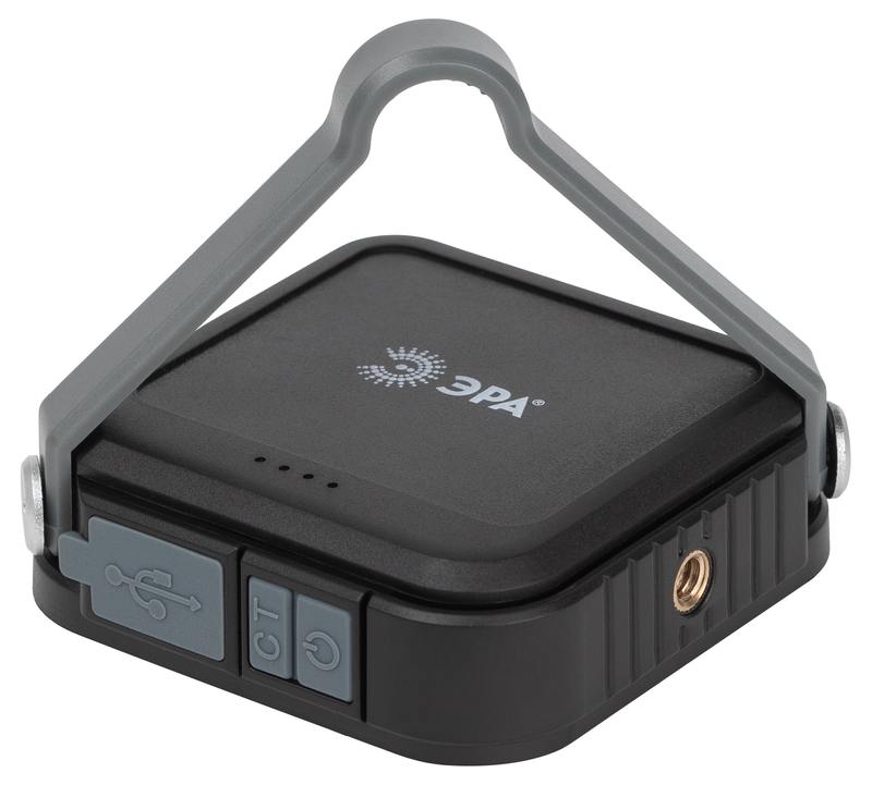 ЭРА PA-807 — компактный светодиодный фонарь-powerbank с 6 режимами работы, поворотной ручкой и удобным креплением для подвешивания. Квадратный корпус (90 х 90 х 30 мм) из легкого ударопрочного пластика обеспечивает эффектный внешний вид фонаря и комфорт при использовании. Поворотную ручку можно использовать как подставку, чтобы устанавливать фонарь на столе.