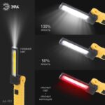 ЭРА AA-901 – многофункциональный светодиодный фонарь-трансформер с поворотной на 360° LED-платой. Оснащён 3 типами креплений: магнит, клипса, крючок. Имеет встроенный аккумулятор, подзаряжается при помощи USB-кабеля (в комплекте). Одного полного заряда хватает на 5 часов непрерывной работы. Степень защиты фонаря от влаги и пыли – IP44.