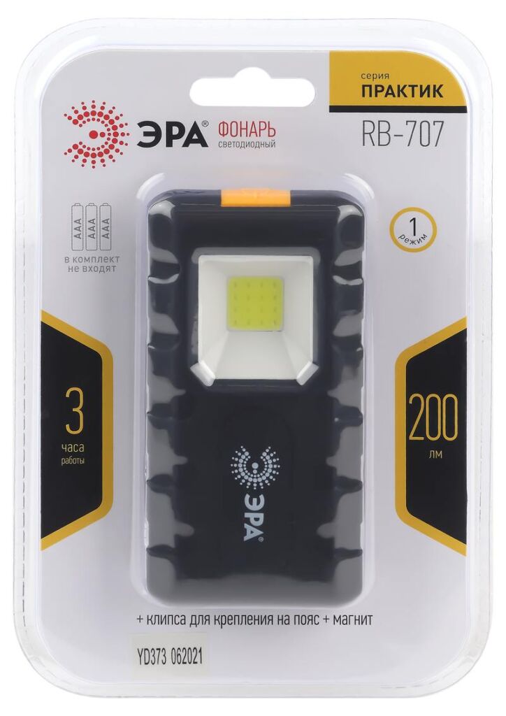 Характеристики Светодиодный фонарь ЭРА Рабочие Практик RB-707 на батарейках, магнит, клипса — держатель: