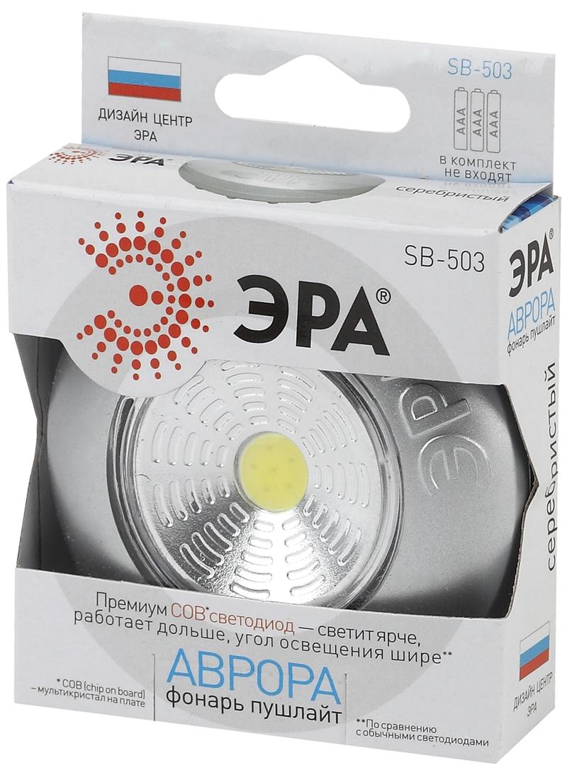 Характеристики Светодиодный фонарь подсветка ЭРА Пушлайт SB-503 Аврора самоклеящийся серебристый COB: