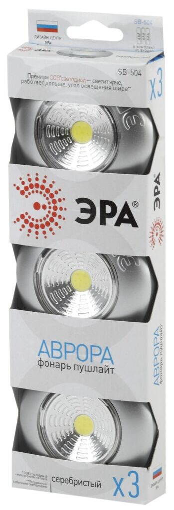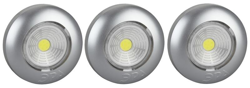 Характеристики Светодиодный фонарь подсветка ЭРА Пушлайт SB-504 Аврора самоклеящийся 3шт серебристый COB: