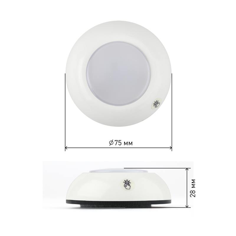 Фонарь-пушлайт "Луна-1" практичный и в тоже время простой фонарь для повседневного использования. Преимущество такого фонаря — долгий срок службы, яркие светодиоды и портативность. Этот компактный фонарь отлично подойдёт для освещения тёмных полок, лестниц, отдалённых плохо освещаемых углов гаража или подсобки. При этом лаконичный дизайн пушлайта позволяет его использовать не только как аварийное освещение, но и как декоративное дополнение. Фонарь Луна-1 выполнен в классическом дизайне, нейтральный белый ободок и центральная светящаяся часть. Фонарь быстро и надёжно крепится к любой поверхности с помощью самоклеящегося элемента. При этом пушлайт не нужно отклеивать, чтобы заменить батарейки. Функциональный бытовой фонарь работает 75 часов без перерыва.Фонарь оснащён специальным маяком — стикером, который светится постоянно и является светонакопителем. Светит мягким зелёным светом, что позвонит найти фонарь без проблем в тёмном помещении. Фонарь-пушлайт оснащён светодиодами нового поколения, которые светят более качественным и ярким светом. Диоды СОВ (chip on board — мультикристалл на плате) представляют собой множество LED элементов, размещённых на небольшой пластине. Фонарь обладает широким углом освещения, а дальность луча составляет 5 метров.