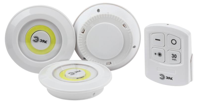 Характеристики Светодиодный фонарь подсветка ЭРА SB-511 пушлайт, 6Вт, COB, 3хAAA, белый, 3 штуке в коробке, ИК пульт: