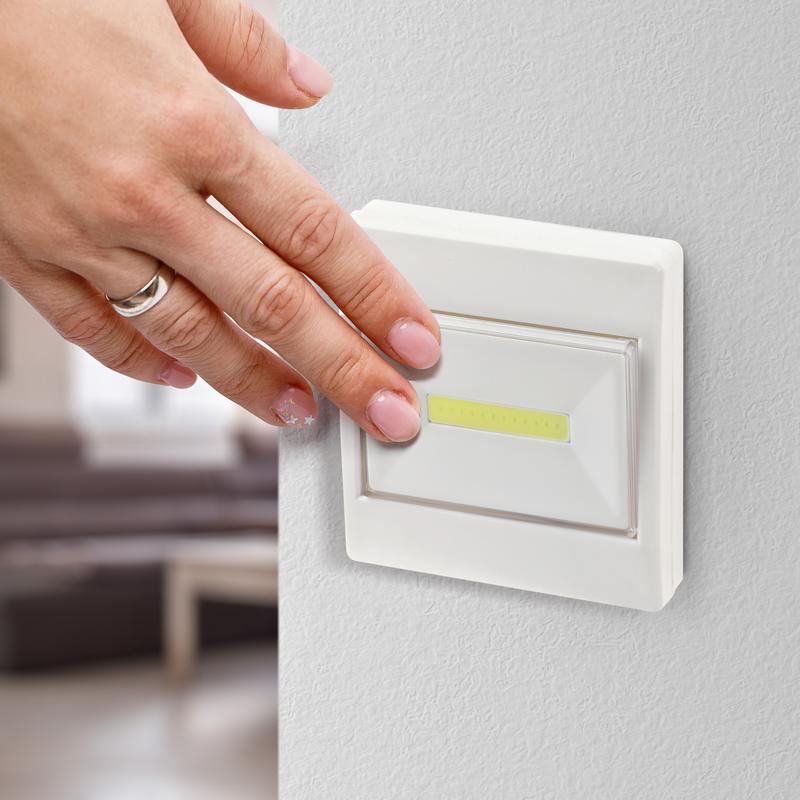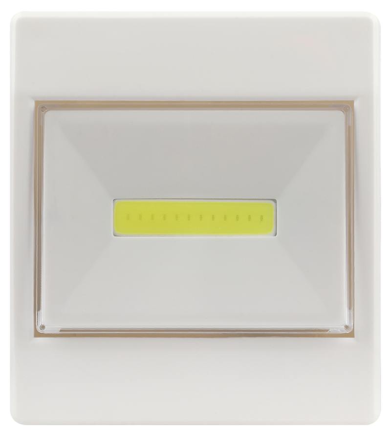 ТРОФИ SB-102 — светодиодный фонарь-подсветка в форме выключателя. Прост в установке и удобен в применении. Два типа крепления — ушко для подвешивания и двойная липучка для монтажа без сверления. Работает от 3 мизинчиковых батареек (3 х ААА). Дает возможность организовать яркую подсветку в любом месте — без привязки к электросети. Включается нажатием на корпус — как обычный выключатель. На кнопке "выключателя" расположена светодиодная плата — именно она создает качественный заливающий свет. Применена новейшая LED-технология — сверхъяркие и суперэкономичные светодиоды COB. Бытовой фонарь-подстветка в аккуратном лаконичном корпусе базового белого цвета универсален для любого интерьера.