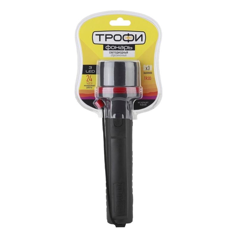 Характеристики Светодиодный фонарь Трофи TR3D ручной на батарейках резина: