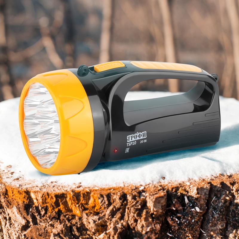 Корпус из ударопрочных материалов оснащен удобной ручкой для переноски. Этот удобный фонарь-прожектор позволяет решить множество проблем. Приобретайте кемпинговый фонарь прожектор от бренда Трофи, и отправляйтесь навстречу приключениям!