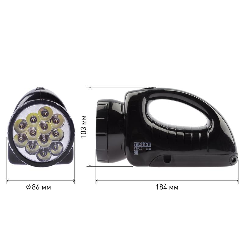Характеристики Светодиодный фонарь Трофи TSP12 прожекторный аккумуляторный со встроенным светильником: