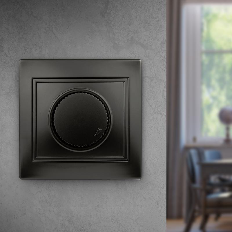 Характеристики Светорегулятор Intro Plano 1-401-05 (диммер) поворотный, 600Вт 230В, IP20, СУ, антрацит: