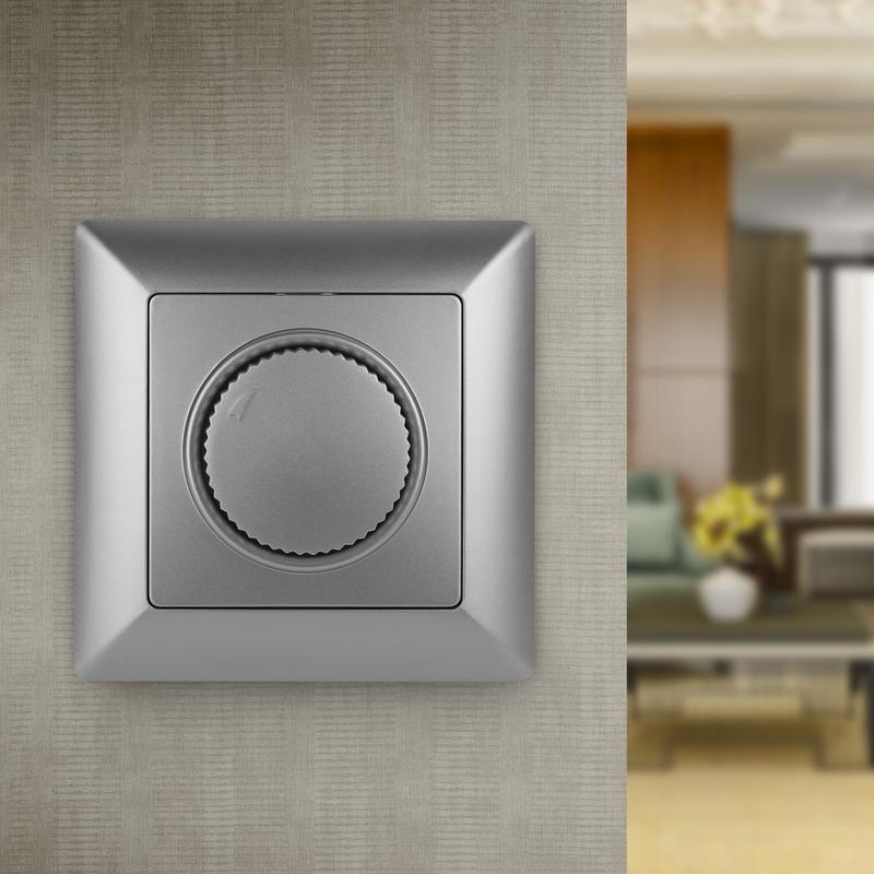 Диммер поворотный серии Intro Solo скрытой установки цвет алюминий 4-401-03. Номинальные характеристики 600ВА 230В . Диммер выполнен из негорючего термопласта, укомплектована одноместной рамкой. Для установки 2-х и более устройств в несколько подрозетников в ряд дополнительно используются многоместные рамки: 2-х постовая — 4-502-хх, 3-х постовая 4-503-хх, 4-х постовая — 4-504-хх (где хх — цветовой код: 01 — белый, 02 — слоновая кость, 03 — алюминий, 04 — шампань, 05 — антрацит, 10 — венге, 11 — сосна). Другие устройства серии вы можете найти введя в поиск Intro Plano.