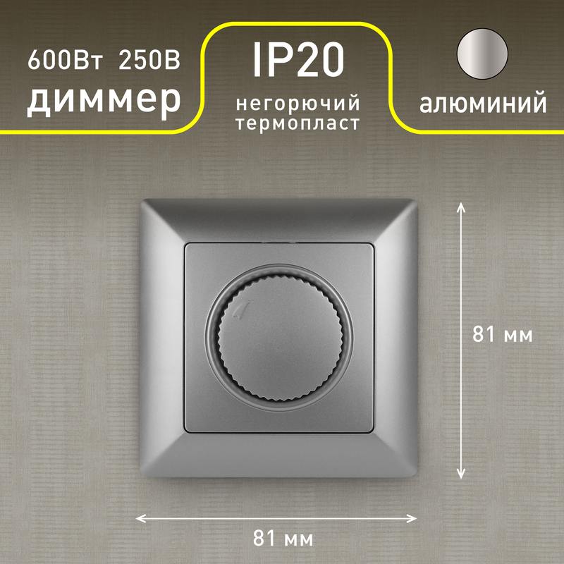 Характеристики Светорегулятор Intro Solo 4-401-03 поворотный, 600Вт 230В, IP20, СУ, алюминий: