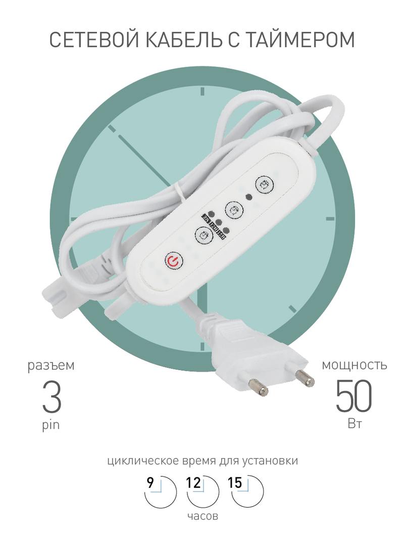 Характеристики Таймер для фитосветильника ЭРА FITO-LINETIME провод для подключения 1,5 м с таймером работы: