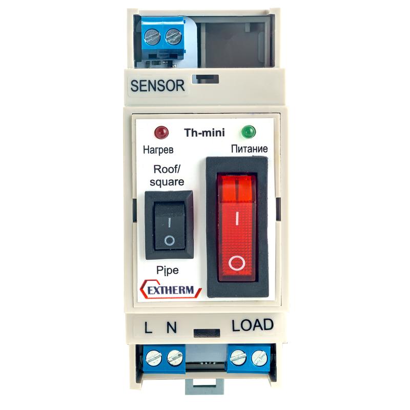 Характеристики Термостат 7А для управления системой электрообогрева на кровлях/площадках/трубах с фиксирован. настройками в компл. с датчиком темпер. EXTHERM Th-Mini: